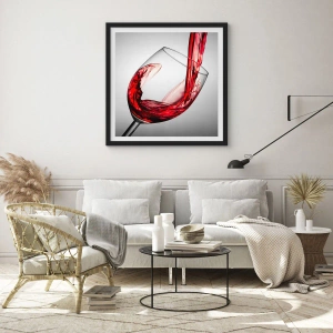 Poster in een zwarte lijst - Rode wijn wordt in een glas geschonken - 50x70cm - Kleur - beweging - geluid - Moderne wanddecoratie voor woonkamer en slaapkamer ARTTOR