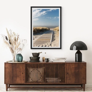 Poster in een zwarte lijst - Achter het duin, in het ruisen van gras - 40x40 cm