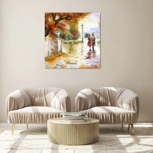 Schilderen op glas - Romantische herfst in het park - 140x50 cm