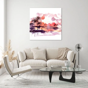 Schilderen op glas - De rust van de tropen in het rood - 80x120 cm