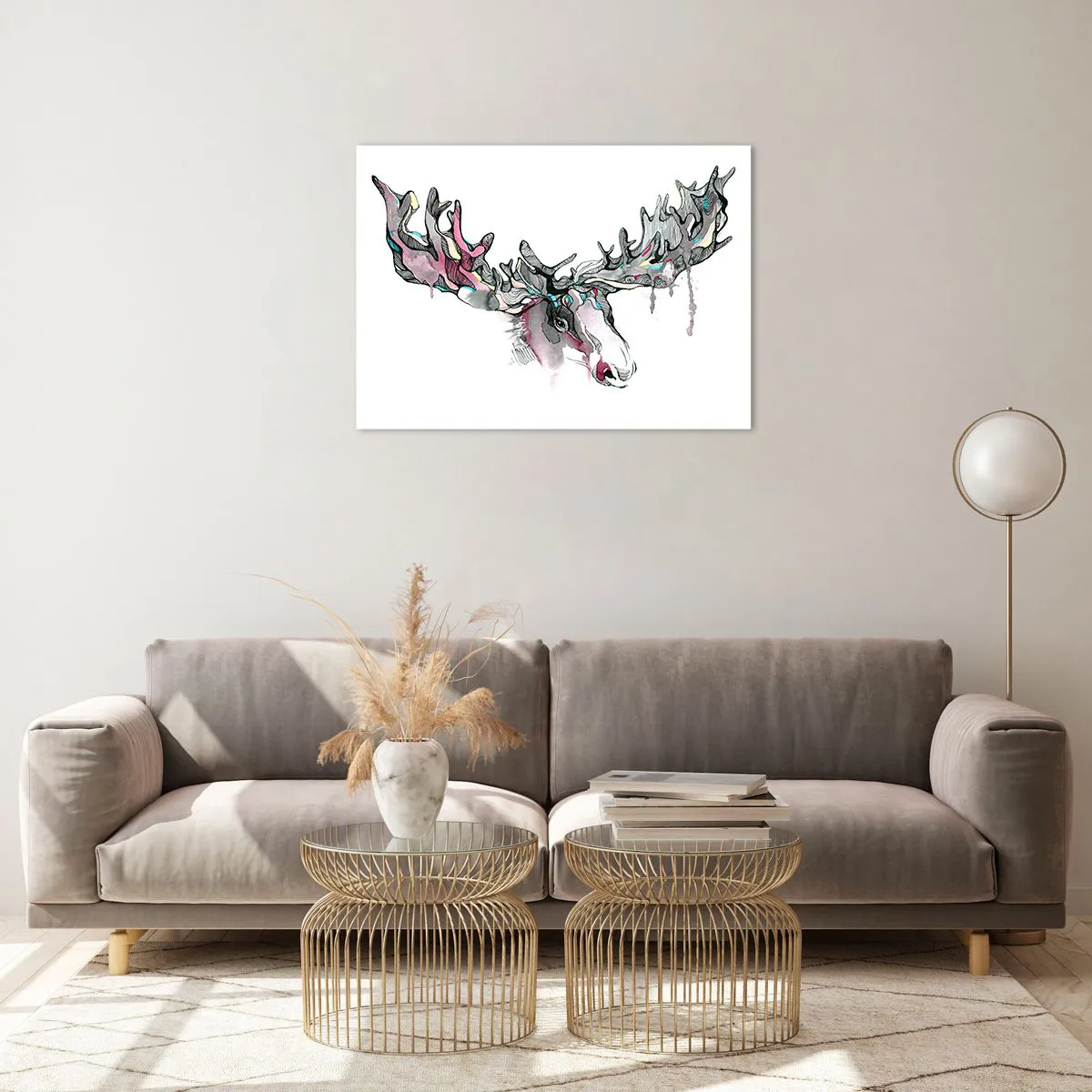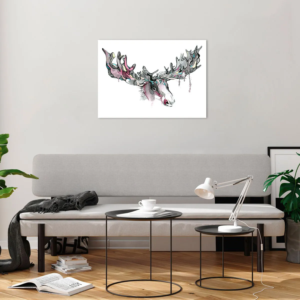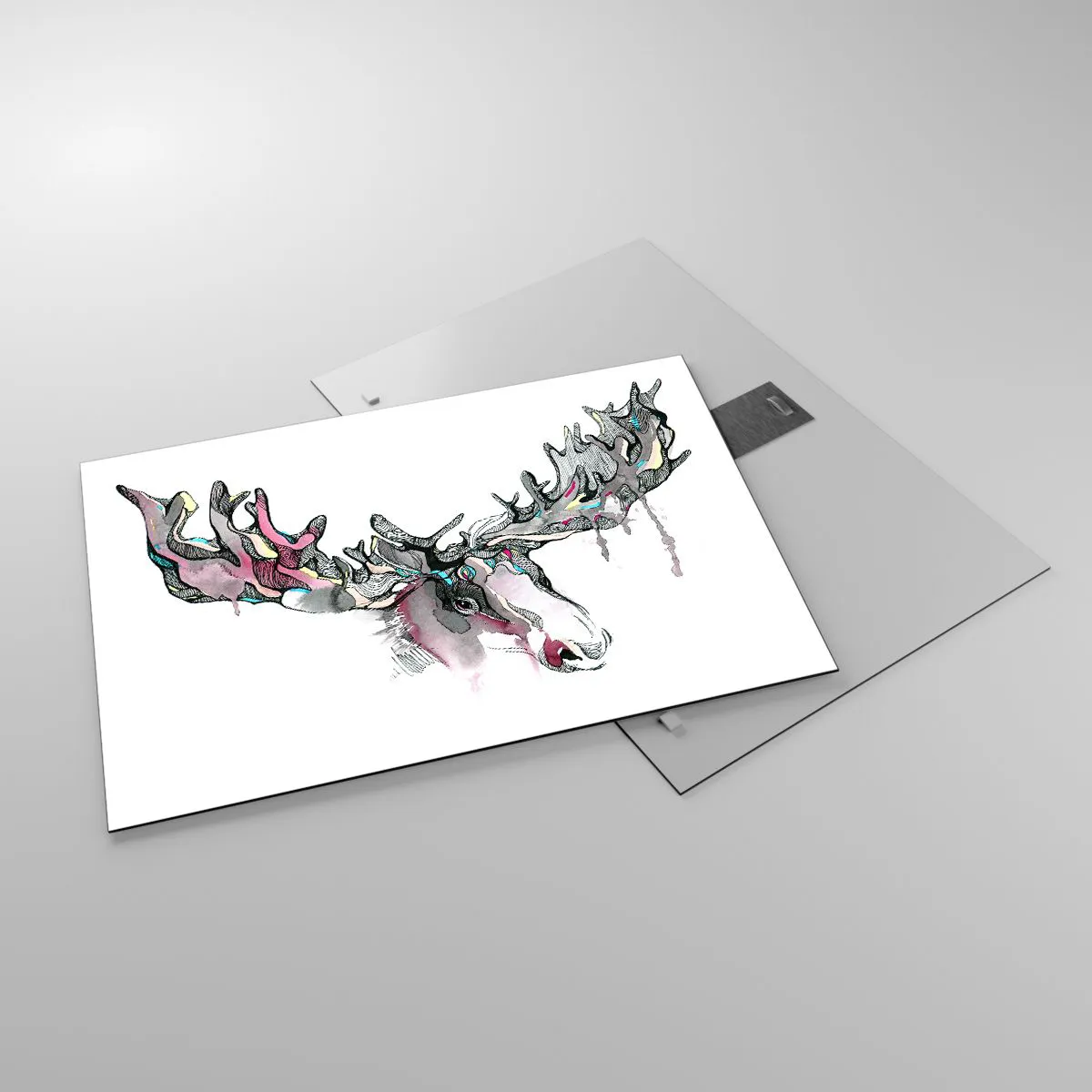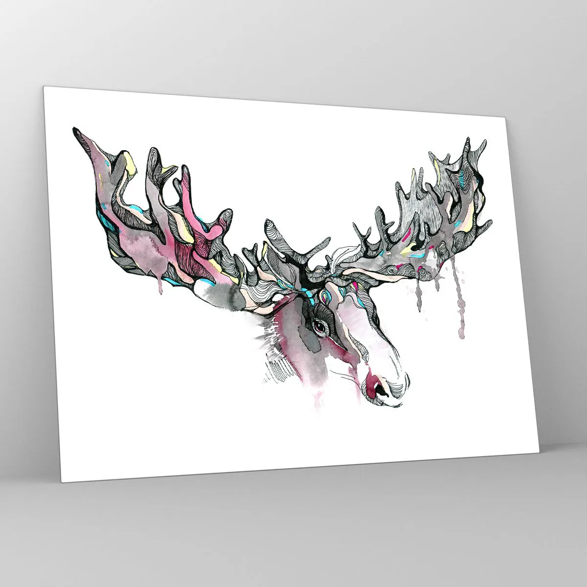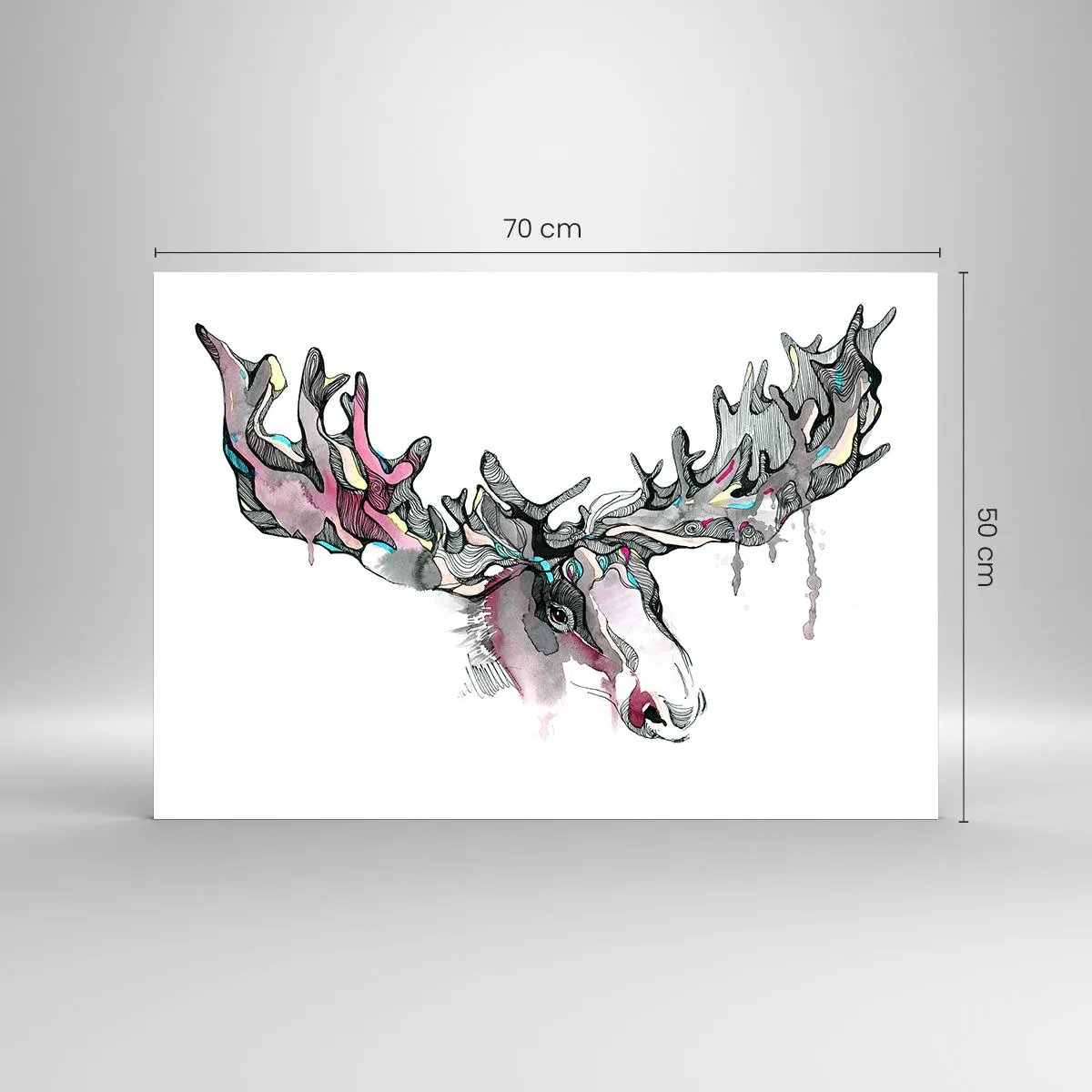 - Deze artistieke aquarel van een eland met indrukwekkende geweien, uitgevoerd in levendige maar subtiele kleuren, is de perfecte aanvulling op moderne interieurs en voegt harmonie toe aan elke kamer.