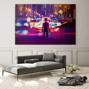 • Stad, mens, New York, Mensen, steden, landschappen, Voor op kantoor, voor de studeerkamer, voor de eetkamer, voor de hal, voor de woonkamer, voor de slaapkamer, Paars, kleurrijk, Verticaal