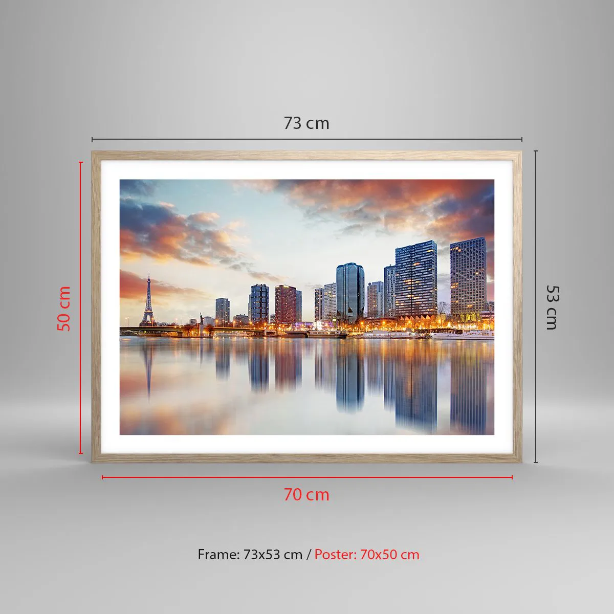Een poster in een licht eiken lijst - De monumentale rust van Parijs - 70x50 cm