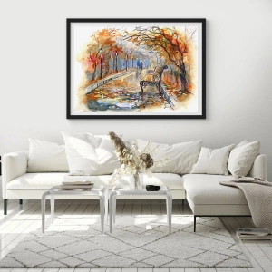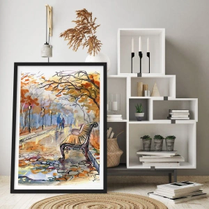Poster in een zwarte lijst - Samen wandelen in de herfst - 30x30 cm