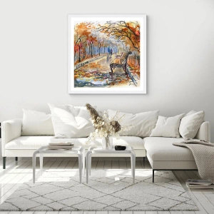 Poster in een witte lijst - Samen wandelen in de herfst - 50x70 cm