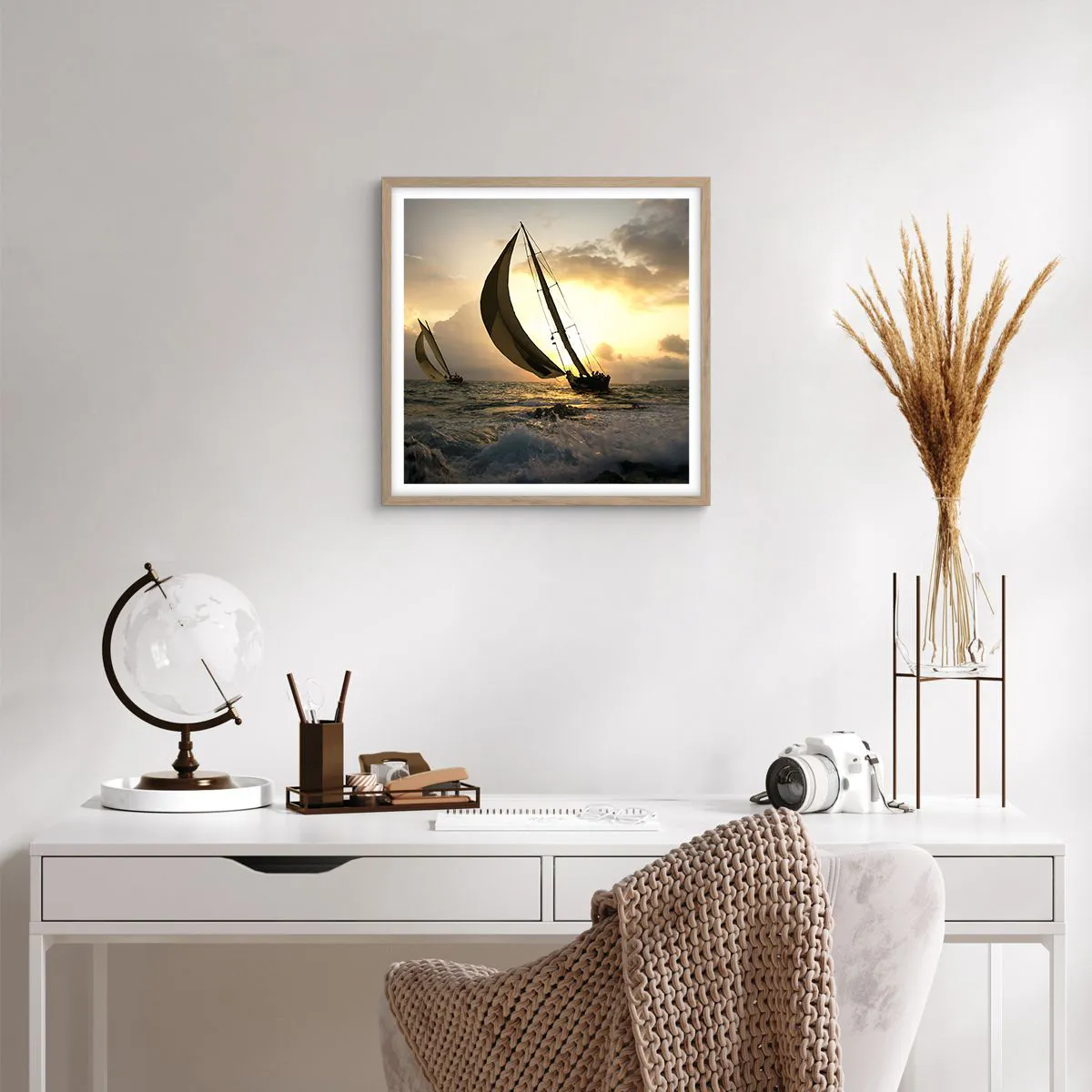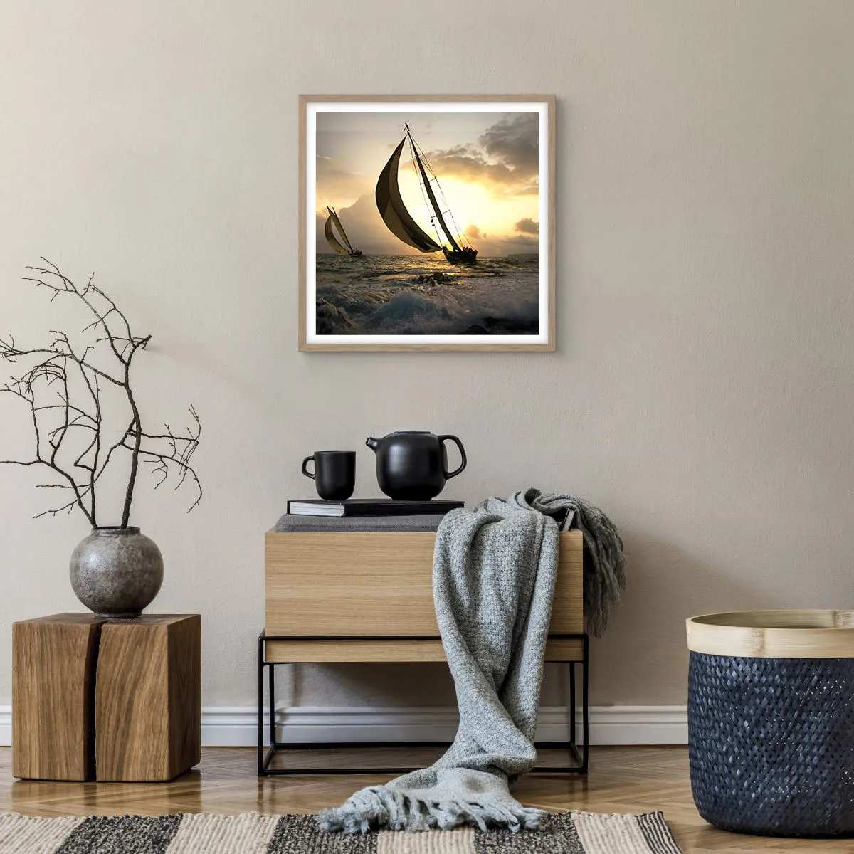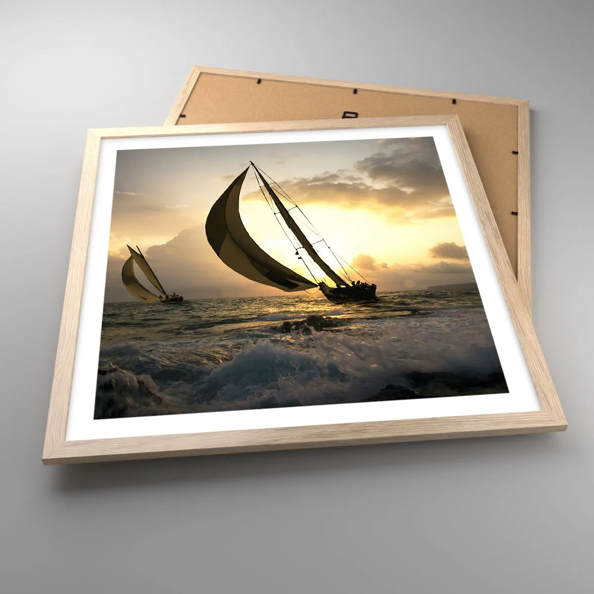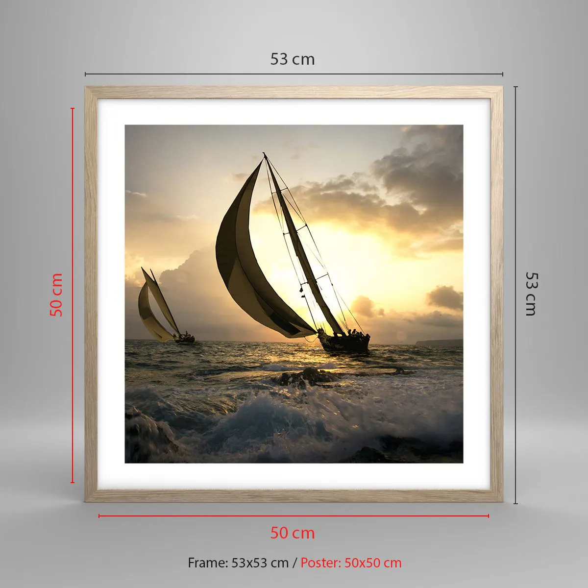 Een poster in een licht eiken lijst - Met de wind en tegen de wind - 50x50 cm