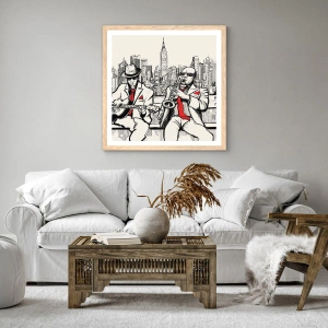 Een poster in een licht eiken lijst - Improvisatie van New York - 30x30 cm