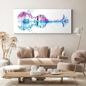 Het schilderij is perfect als wanddecoratie in ruimtes die waarde hechten aan hedendaagse kunst en unieke motieven. Het kalme karakter en de artistieke stijl passen perfect in ruimtes zoals een woonkamer, kantoor of slaapkamer. Het is ook een ideale keuze voor muziekliefhebbers en iedereen die op zoek is naar bijzondere decoratieve elementen.