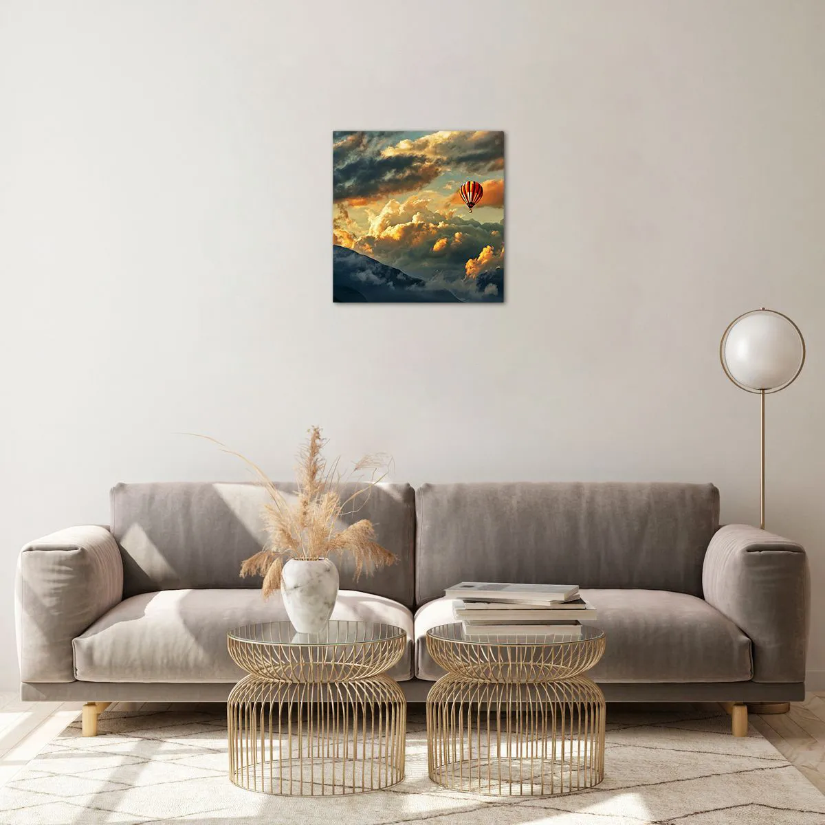 • Abstractie, ballonvlucht, bergen, Anders, Landschappen, Natuur, Voor op kantoor, voor de studeerkamer, voor de eetkamer, voor de hal, voor de woonkamer, voor de slaapkamer, Bruin, blauw, oranje, Plein
