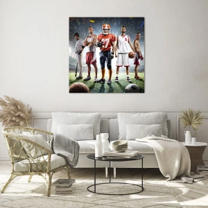 Schilderen op glas - Atleten van verschillende disciplines in het stadion in de schijnwerpers - 70x50cm - Veldgladiatoren - Moderne wanddecoratie voor woonkamer en slaapkamer ARTTOR