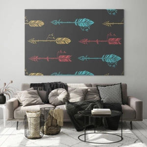 Schilderen op glas - Kleurrijke pijlen op een donkere achtergrond in een grafische lay-out - 70x50cm - In de verordening - Moderne wanddecoratie voor woonkamer en slaapkamer ARTTOR