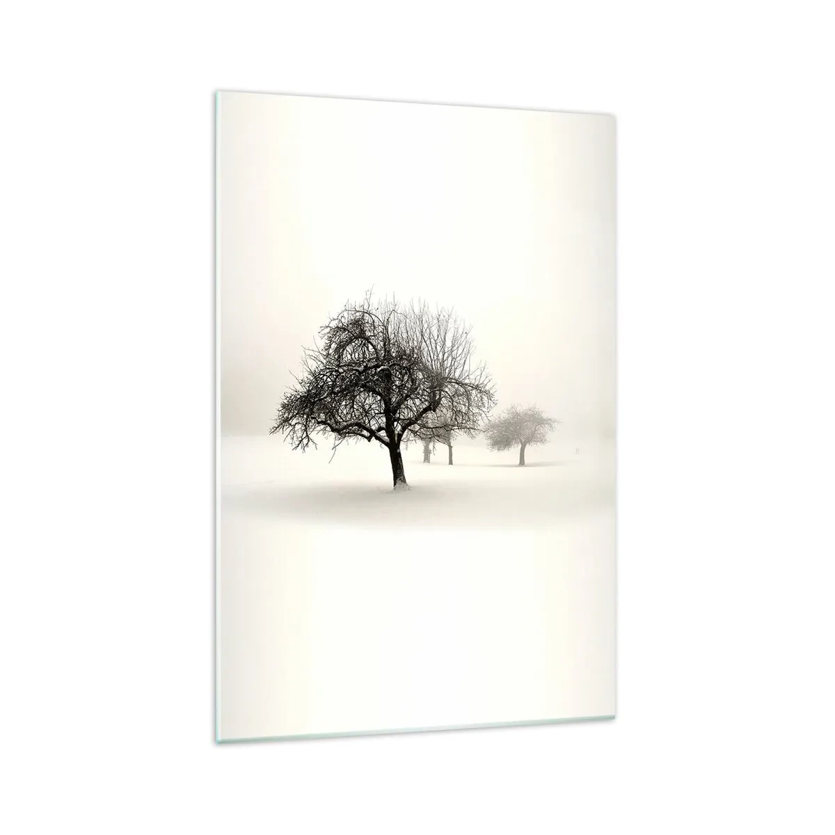 Het schilderij op het glas is gemaakt van 4 mm dik glas. De randen van het glas zijn mat trapeziumvormig geslepen. Het schilderij is veilig in gebruik en klaar om op te hangen - het heeft metalen hangers aan de achterkant van het schilderij en schuimrubberen afstandhouders die de gelijkmatige afstand tussen het schilderij en de muur regelen.