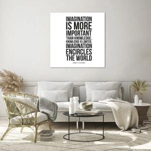 Schilderen op glas - Een citaat over verbeeldingskracht in minimalistische typografie - 70x50cm - Einstein over de kracht van verbeelding - Moderne wanddecoratie voor woonkamer en slaapkamer ARTTOR