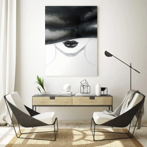 Schilderen op glas - Mysterieus gezicht met bedekte ogen in zwart-witte waterverf - 70x50cm - Een sensueel mysterie - Moderne wanddecoratie voor woonkamer en slaapkamer ARTTOR