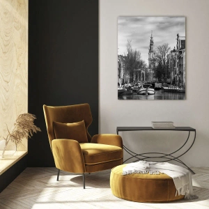 Schilderen op glas - Zwart-witbeeld van een gracht in Amsterdam - 70x50cm - Amsterdamse sferen - Moderne wanddecoratie voor woonkamer en slaapkamer ARTTOR