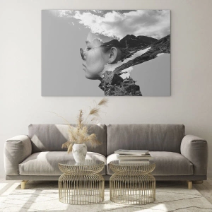 Het glasschilderij 'Portret van Boven en Bewolkt' is een unieke compositie met behulp van de techniek van dubbele belichting. De combinatie van een menselijk silhouet met een majestueus berglandschap en wolken creëert een surrealistisch effect dat de aandacht trekt. Dit kunstwerk laat je nieuwe perspectieven ontdekken en zet aan tot nadenken over de relatie tussen mens en natuur. In zwart-wit krijgt het schilderij een nog diepere expressie, waardoor de kracht van emotie en de artistieke boodschap worden benadrukt.