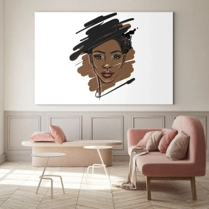 Schilderen op glas - Portret van een zwarte vrouw in modeschetsstijl - 70x50cm - Zoet als chocolade - Moderne wanddecoratie voor woonkamer en slaapkamer ARTTOR