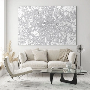 Schilderen op glas - Een zwart-witkaart met een dicht stratenpatroon in minimalistische stijl. - 70x50cm - Kaart van het doolhof van Londen - Moderne wanddecoratie voor woonkamer en slaapkamer ARTTOR