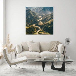 Schilderen op glas - Recht uit het hart van de bergen - 120x50 cm