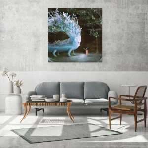 "Fantastic Encounter" is een perfecte decoratie voor een kinderkamer, maar ook voor ruimtes waar creativiteit en de behoefte aan dromen de boventoon voeren – zoals een atelier, bibliotheek, woonkamer of ontspanningshoek. Het schilderij stimuleert de verbeelding, inspireert en nodigt uit tot je eigen interpretatie van het verhaal dat zich in dit magische bos zou kunnen afspelen.