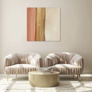 Het minimalistische karakter van het schilderij maakt het perfect voor moderne interieurs, met name die in Scandinavische, Japans- of industriële stijl. De warme kleuren hebben een rustgevend effect en maken de ruimte gezelliger. Verticale lijnen voegen dynamiek en elegantie toe aan de compositie.
