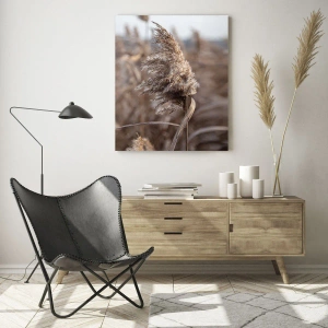 Het glasschilderij "Tijd om weg te vliegen met de wind" toont een delicate opname van droog gras dat in de wind wuift. De subtiele kleuren in beige en bruintinten creëren een sfeer van stilte, vrede en verbondenheid met de natuur. De close-upcompositie onthult de schoonheid van de details van de natuur, die vaak onopgemerkt blijven in de dagelijkse hectiek. Dit schilderij is een ode aan eenvoud en natuurlijke schoonheid.