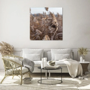 Schilderen op glas - Close-up van droog gras dat in de wind wappert - 70x50cm - Tijd om met de wind mee te gaan - Moderne wanddecoratie voor woonkamer en slaapkamer ARTTOR
