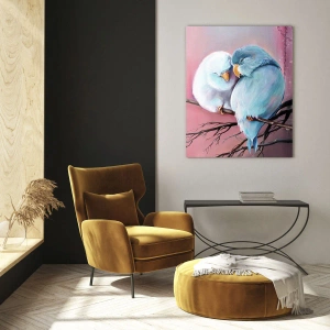 Vogels zittend op een dunne tak, ondergedompeld in een pastelkleurige achtergrond, symboliseren liefde, verbondenheid en wederzijdse zorg. Hun gedeelde aanwezigheid in het schilderij behoeft geen verdere woorden – een blik is voldoende om de emoties te voelen die eruit stromen. Het schilderij heeft een rustgevende, kalmerende werking en brengt een sfeer van rust in elk interieur.