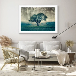 Poster in een witte lijst - Een appelboom op een blauw veld? - 50x40 cm