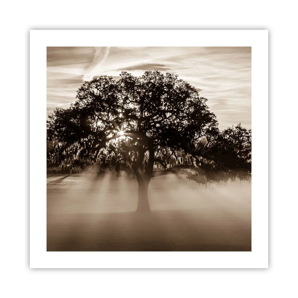 • Landschap, Boom, Zonnestralen, Plantkunde, landschappen, natuur, vintage en retro, Voor op kantoor, voor de studeerkamer, voor de eetkamer, voor de hal, voor de woonkamer, voor de slaapkamer, Bruin zwart, Plein