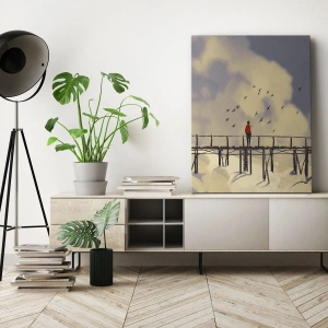 Het canvas wordt over het frame gespannen. De zijkanten en randen zijn bedrukt en zetten het beeld voort. De schilderij is klaar om aan de muur te hangen. Elk product heeft een hanger aan het frame en een montagekit (schroef + pin).