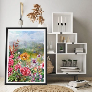Poster in een zwarte lijst - Een bloemenveld op een zonnige dag - 50x70cm - Een tuin die gek is geworden - Moderne wanddecoratie voor woonkamer en slaapkamer ARTTOR