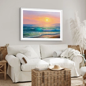 Poster in een witte lijst - Een turquoise lied van de golven - 91x61 cm