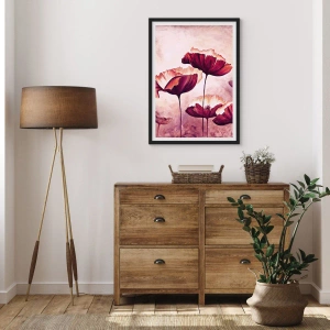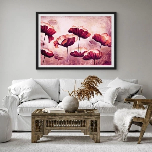 Poster in een zwarte lijst - Rood en wit bloemblad - 100x70 cm