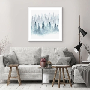 Poster in een witte lijst - Gehuld in mist - 91x61 cm