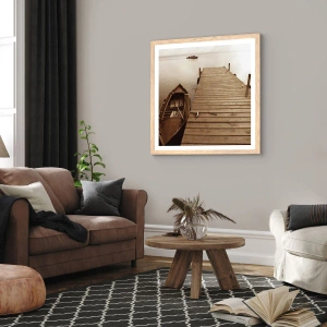 • Landschap, Meer, Houten Brug, Landschappen, Maritiem, Bruggen, Voor op kantoor, voor de studeerkamer, voor de eetkamer, voor de badkamer, voor de hal, voor de woonkamer, voor de slaapkamer, Bruin, Verticaal