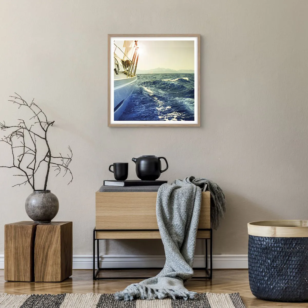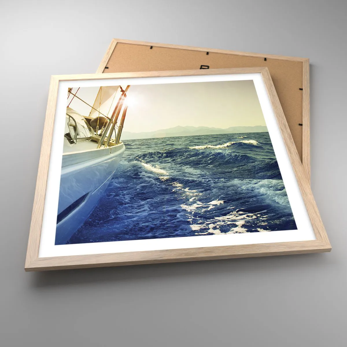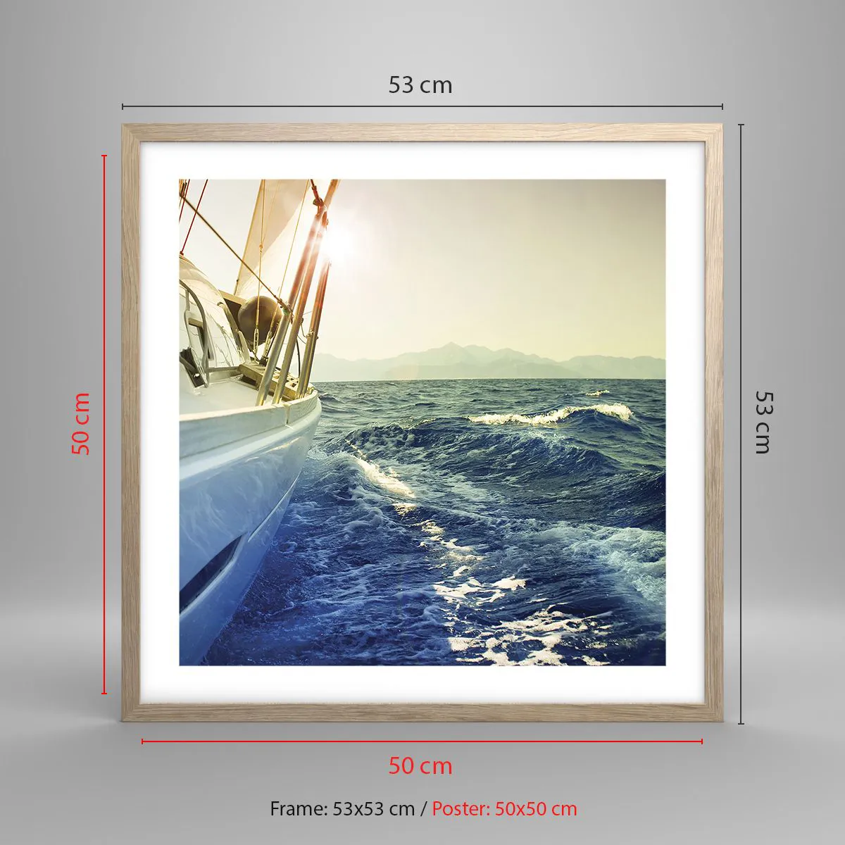 Een poster in een licht eiken lijst - Voor het avontuur - 50x50 cm