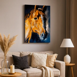 Het canvas wordt over het frame gespannen. De zijkanten en randen zijn bedrukt en zetten het beeld voort. De schilderij is klaar om aan de muur te hangen. Elk product heeft een hanger aan het frame en een montagekit (schroef + pin).