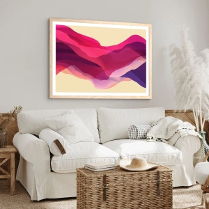 Een poster in een licht eiken lijst - Paarse golven - 40x40 cm