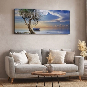 Het canvas wordt over het frame gespannen. De zijkanten en randen zijn bedrukt en zetten het beeld voort. De schilderij is klaar om aan de muur te hangen. Elk product heeft een hanger aan het frame en een montagekit (schroef + pin).