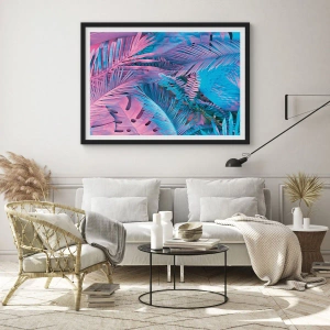 De poster "Tropics in Pink and Blue" is een decoratie die de aandacht trekt dankzij de intense neontinten roze en blauw. Tropische bladeren creëren een dynamische en energieke compositie die een unieke exotische sfeer aan het interieur toevoegt.