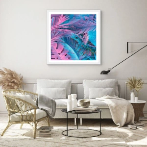 Poster in een witte lijst - Tropen in roze en blauw - 50x70 cm