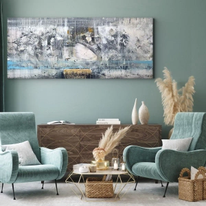 Schilderen op canvas - Abstracte compositie in koele tinten - 70x50cm - Als op ijs, als zo moeizaam - Moderne wanddecoratie voor woonkamer en slaapkamer ARTTOR