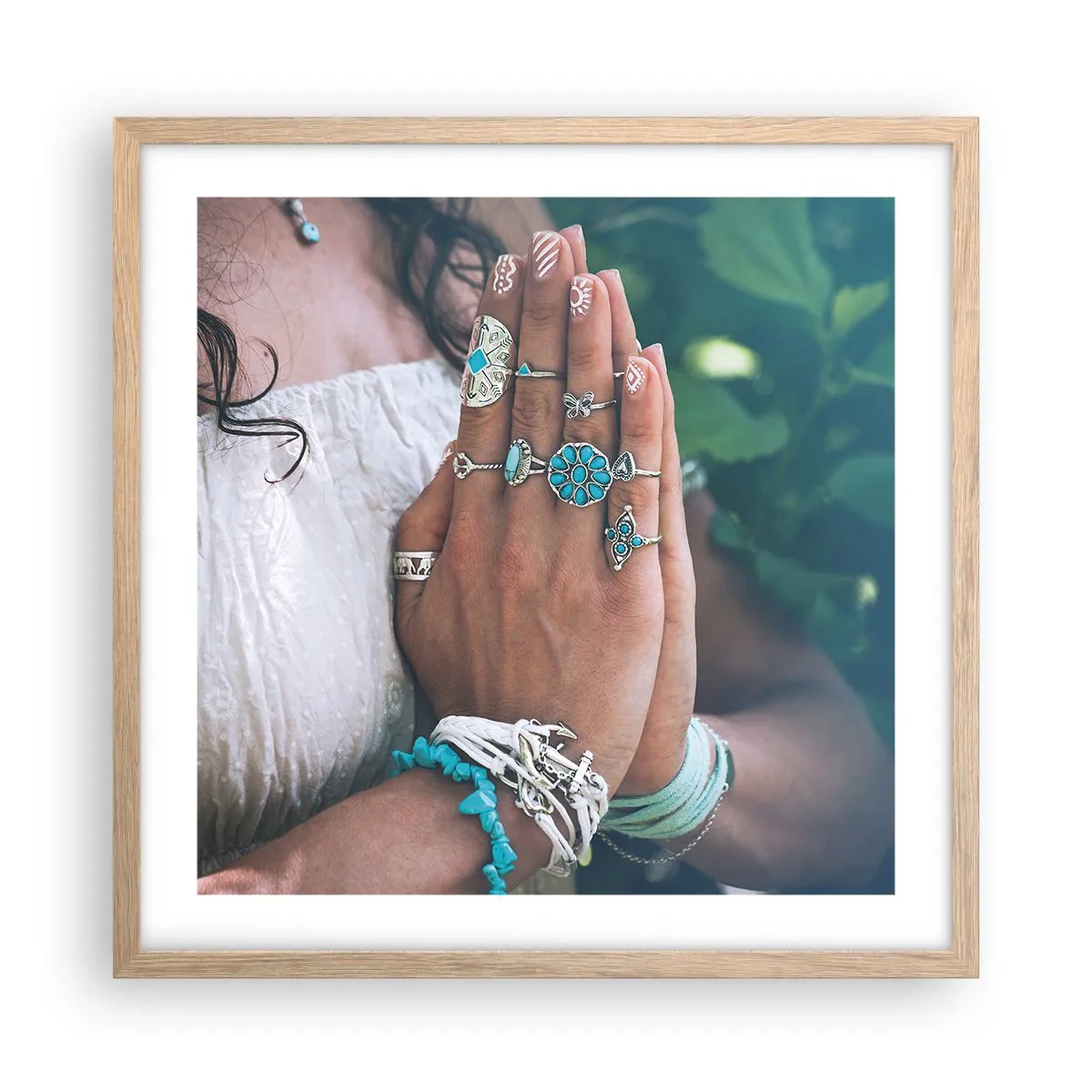 Een poster in een licht eiken lijst - Welkom in het centrum van het zijn - 50x50 cm