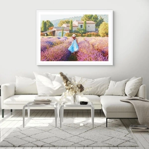 Poster in een witte lijst - Lavendel meisje - 91x61 cm