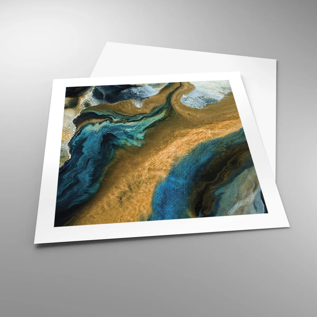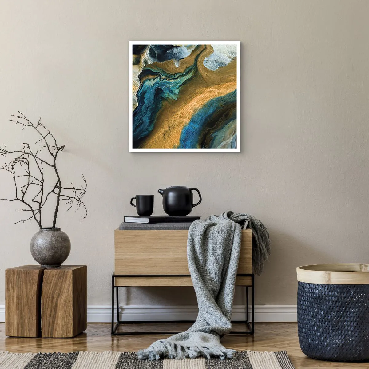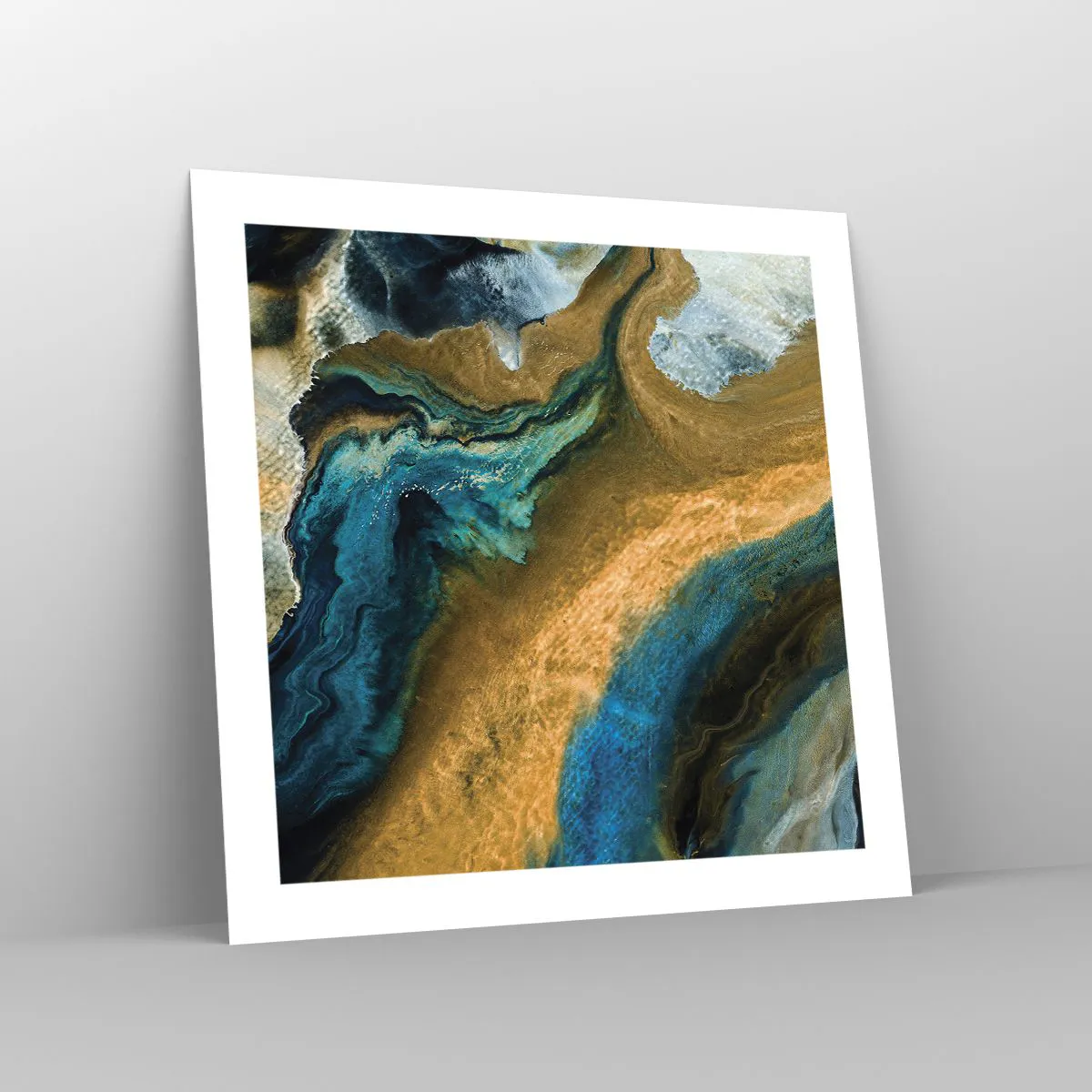 Poster - Blauw - geel - wederzijdse invloeden - 50x50 cm