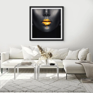 • Samenvatting, Vrouwenlippen, Vrouwengezicht, Mensen, mode, Voor de eetkamer, Voor de hal, Voor de woonkamer, Voor de slaapkamer, , Zwart goud, Verticaal