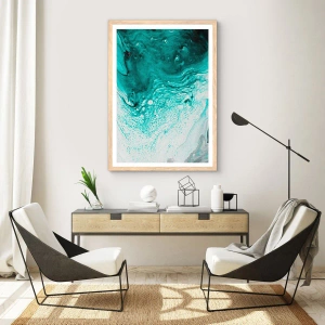 Een poster in een licht eiken lijst - Versmelten in wit en turkoois - 100x70 cm