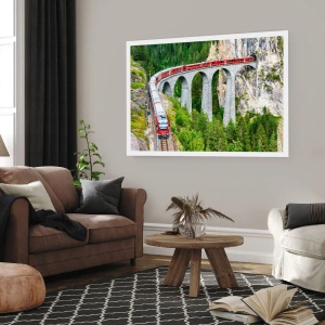 Poster - Spoorlijn voor uitzicht op de bergen - 60x60 cm