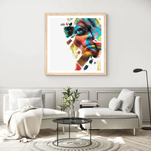 Een poster in een licht eiken lijst - Een kleurrijke persoonlijkheid - 40x40 cm